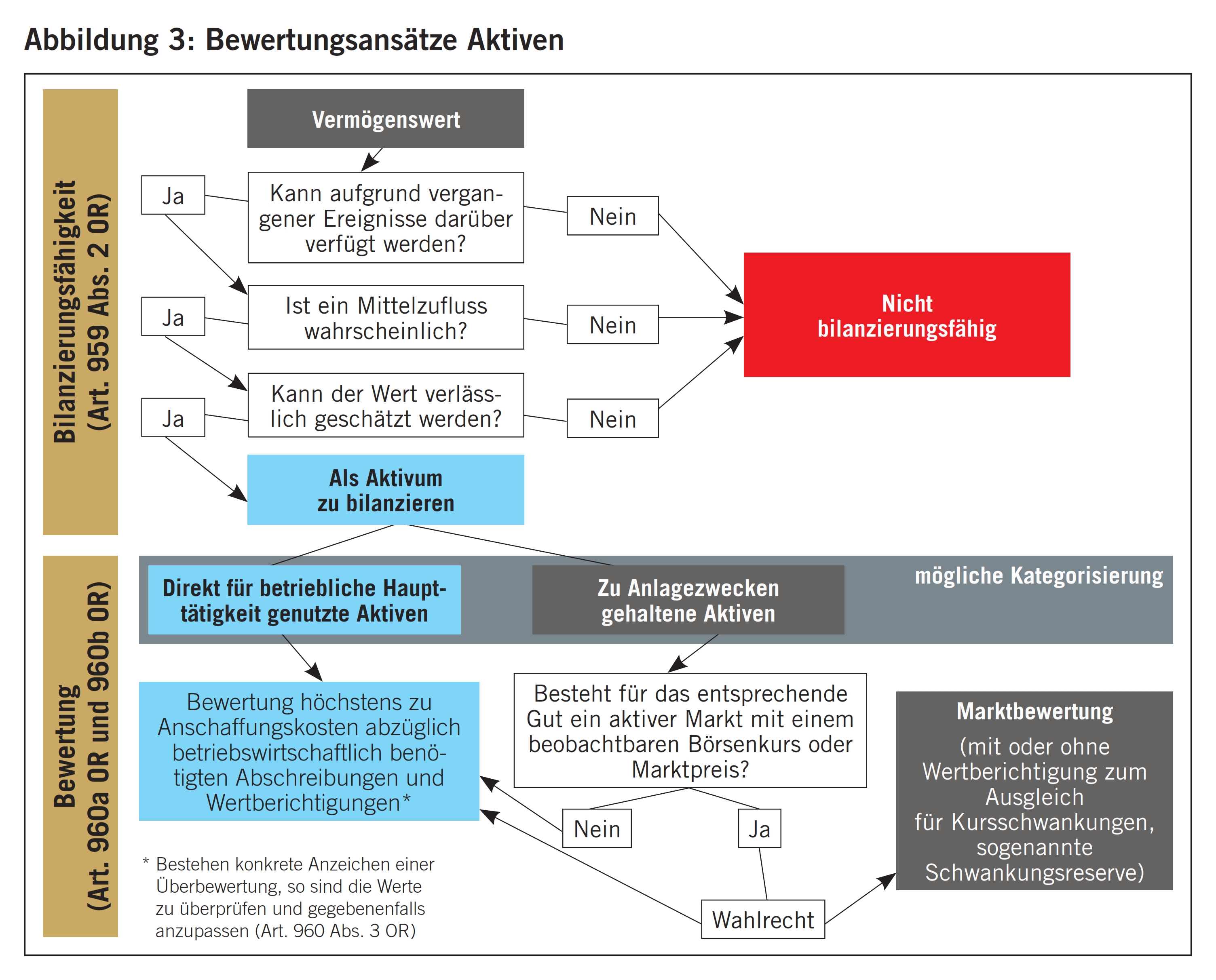 - Werden Aktiven zum Börsenkurs oder zum Marktpreis am Bilanzstichtag bewertet, so ist eine Wertberichtigung zulasten der Erfolgsrechnung zulässig, um Schwankungen im Kursverlauf Rechnung zu tragen.