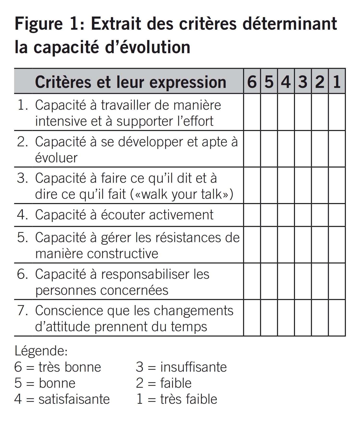 Dans le cadre d’un processus de développement des cadres, le champ d’action «capacité d’évolution» a notamment été identifié après un état des lieux.