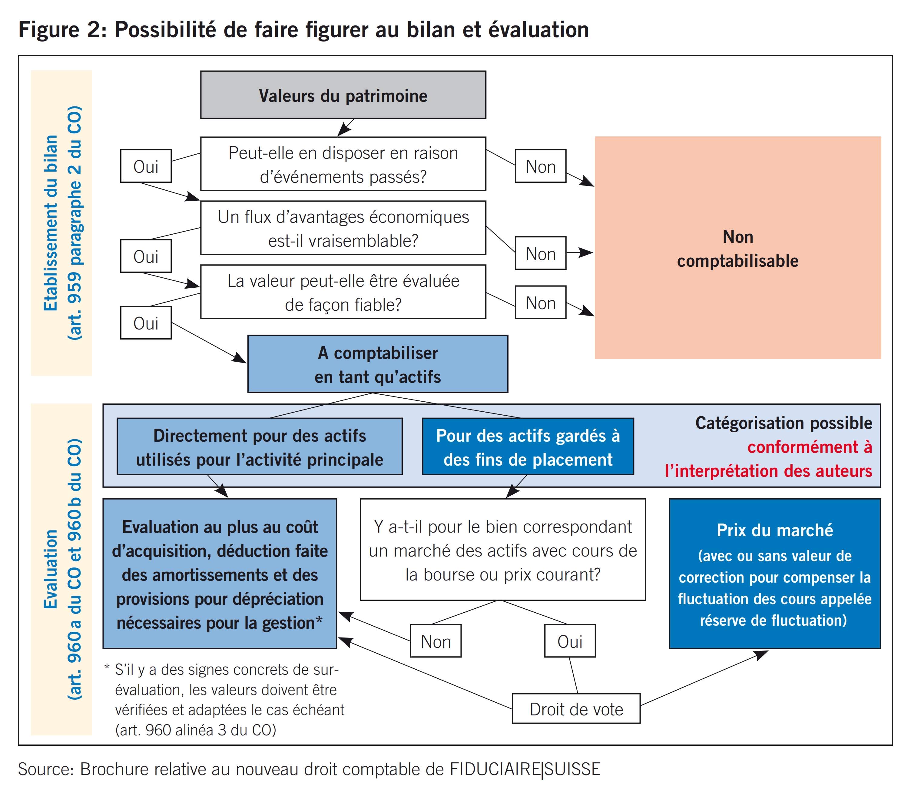 Du point de vue du contrôle restreint, l’art. 960b CO constitue certainement une particularité puisqu’il permet, en cas d’évaluation subséquente, une évaluation des actifs à un prix du marché prétendument observable. Cela vaut également lorsque ce prix du marché observable se situe au-dessus de la valeur nominale ou de la valeur d’acquisition. Pour faire usage de ce droit, il est nécessaire d’évaluer tous les actifs du poste du bilan correspondant qui se distinguent par un prix du marché observable au cours ou au prix du marché le jour d’établissement du bilan. Il est nécessaire de préciser ce type d’évaluation dans l’annexe aux comptes annuels.