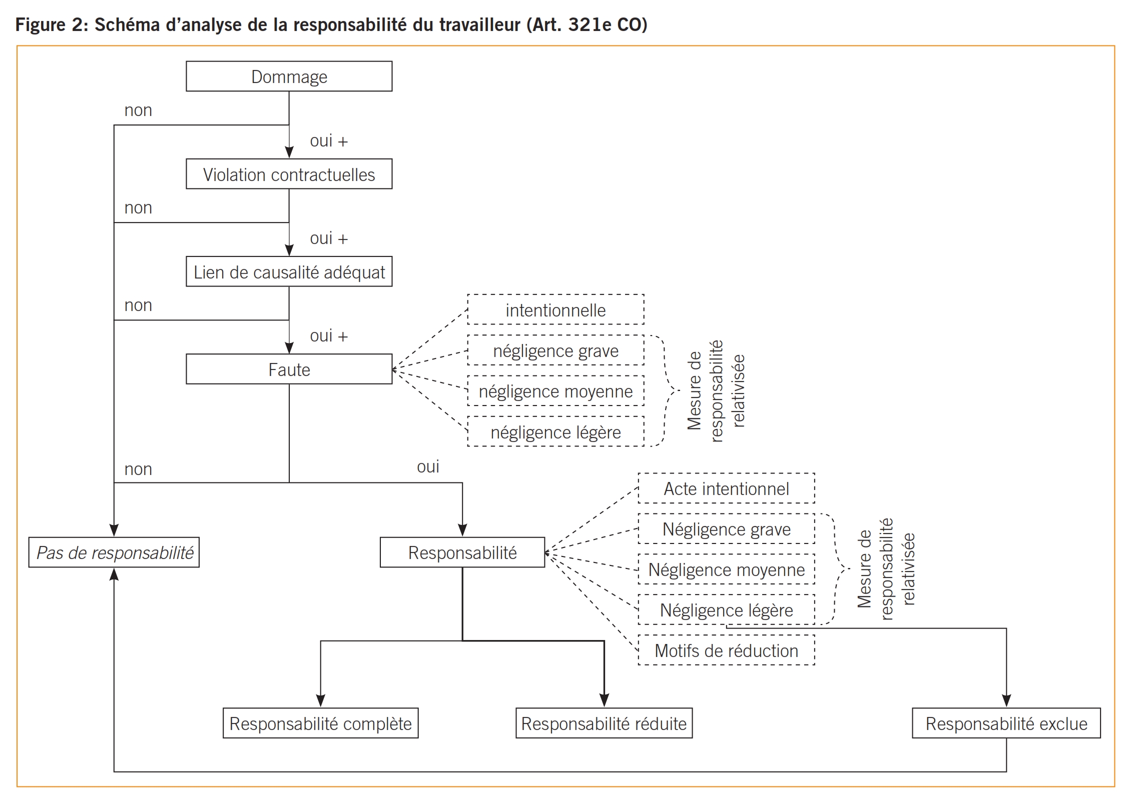 Pour commencer, la loi rend l’évaluation de la responsabilité effective du travailleur tout sauf simple: elle institue à l’art. 321e CO une mesure de la diligence relativisée selon laquelle il convient d’évaluer dans une première étape si le travailleur est effectivement fautif (sans faute, pas de responsabilité), avant de procéder dans une deuxième étape à l’estimation du montant des dommages-intérêts effectifs. Cette évaluation n’est pas rendue plus simple par le fait que dans un cas particulier, diverses raisons peuvent réduire davantage encore la responsabilité du travailleur, et par le fait que les tribunaux se voient attribuer une marge de manœuvre considérable pour l’estimation de l’importance du dommage subi.